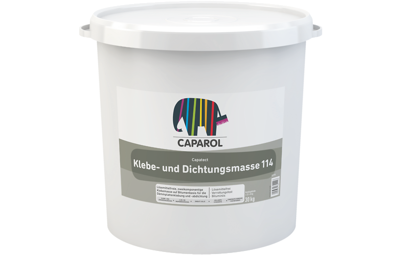 De Capatect Perimeterdämmplatten Bitumenlijm 114 is een flexibele, oplosmiddelvrije 2-componenten bitumenlijm, speciaal ontwikkeld voor het verlijmen van: