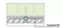 Om de werking van het voegenband zeker te stellen mag er in het midden van het band, ca. 2 cm, geen lijmmortel aanwezig zijn. Let erop de het voegenband verdiept wordt aangebracht.
